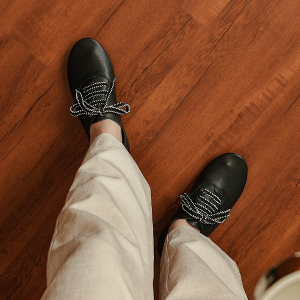 • Handwoven shoelace detail adds artisanal charm to a refined leather silhouette, crafted for comfort that carries you anywhere.