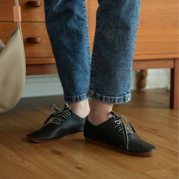 • Handwoven shoelace detail adds artisanal charm to a refined leather silhouette, crafted for comfort that carries you anywhere.