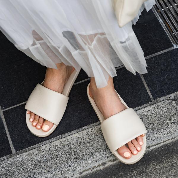 • Slide into effortless style and buttery comfort. Whether you're stepping out or staying in, these slides feels as good as it looks—utterly comfortable and effortlessly chic.