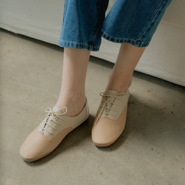 Contrasting leather panels bring quiet dimension to a classic flat. Works well with neutral wardrobes and relaxed everyday silhouettes.