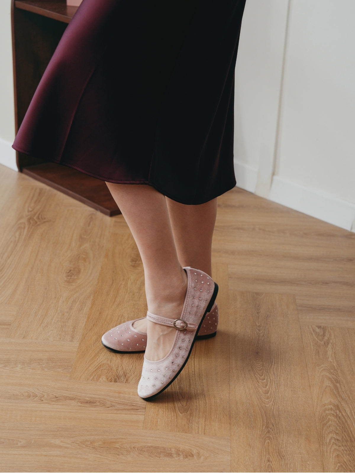 A classic Mary Jane silhouette refined with delicate crystal details. The velvet base enhances its festive charm while keeping the look soft and wearable. Designed to stand out just enough, whether for special dinners or everyday outings.