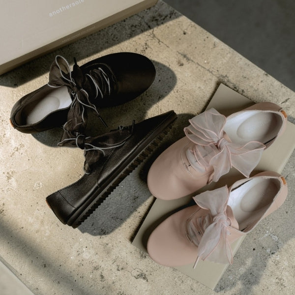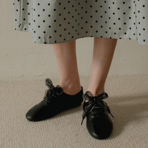 A soft bow detail adds character to a minimal flat. Pairs easily with dresses, skirts, or casual denim.